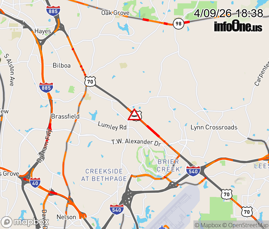The left lane is closed near Page Rd. Updated: Thu 4/9/26 6:38 PM EDT ![]() Updated: Thu 4/9/26 6:38 PM EDT |