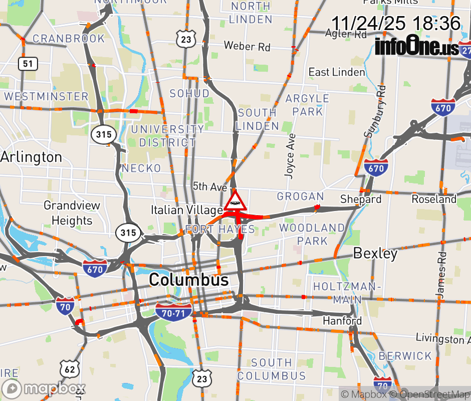 The right shoulder is blocked on I-71 North beyond I-670 West, due to a crash. Updated: Mon 11/24/25 6:36 PM EST ![]() Updated: Mon 11/24/25 6:36 PM EST |
