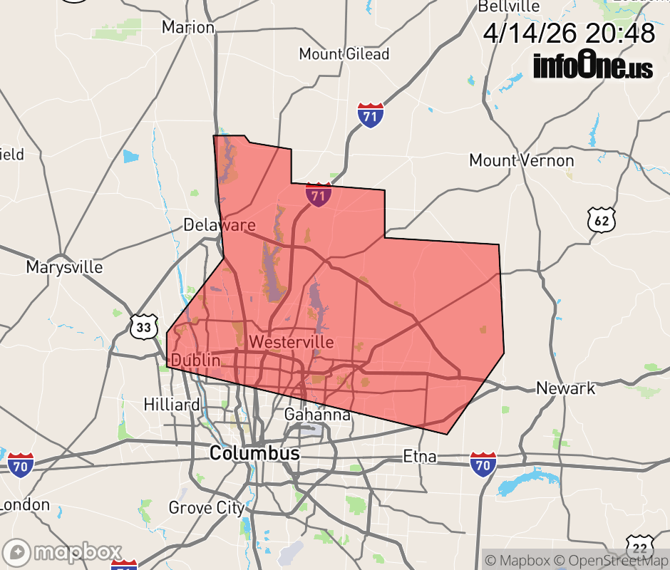 Canceled 4/14/26 9:06 PM Severe Thunderstorm Warning issued April 14 at 8:47PM EDT until April 14 at 9:30PM EDT by NWS Wilmington OH SVRILN The National Weather Service in Wilmington has issued a * Severe Thunderstorm Warning for... Northeastern Franklin County in central Ohio... Delaware County in central Ohio... Western Licking County in central Ohio... * Until 930 PM EDT. * At 846 PM EDT, a severe thunderstorm was located near Marysville, moving east at 45 mph. HAZARD...60 mph wind gusts. SOURCE...Radar indicated. IMPACT...Expect damage to trees and power lines. * Locations impacted include... Dublin, Westerville, Delaware, Worthington, Pataskala, Powell, Johnstown, Sunbury, Ashley, Minerva Park, Beechwood Trails, Polaris, Easton, New Albany, Jersey, Shawnee Hills, and Galena. This includes I-71 in Ohio between mile markers 116 and 138. ![]() |