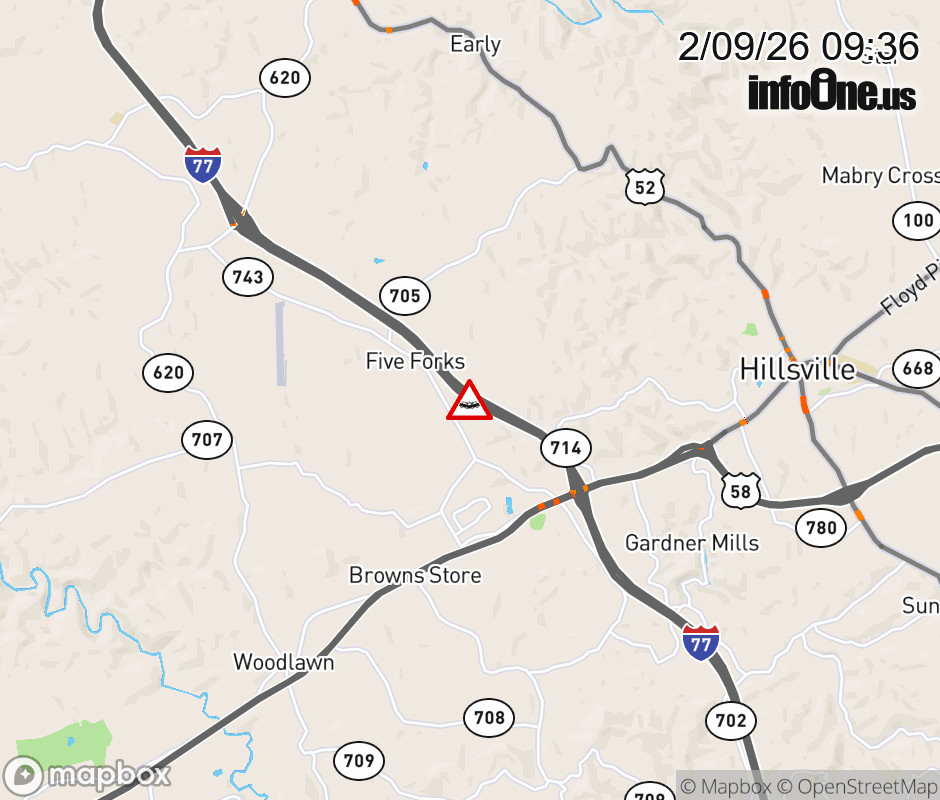 On I-77 at mile marker 16.4 in the County of Carroll, motorists can expect delays due to a vehicle crash. The south right shoulder is closed. ![]() |