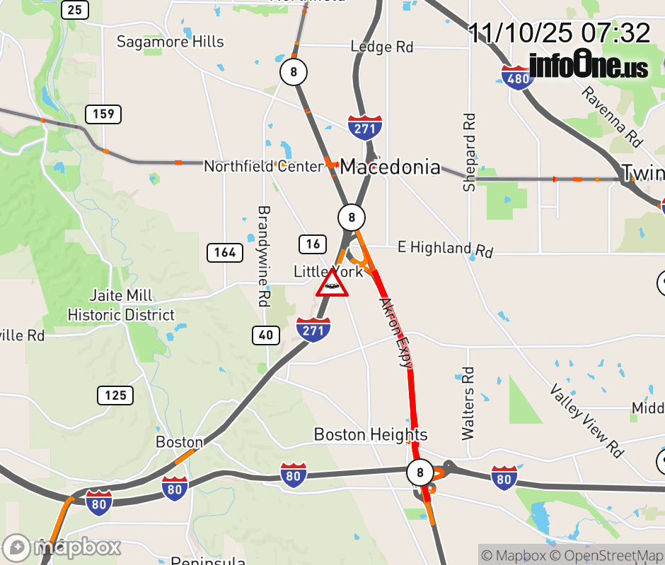 The left lane is blocked on I-271 North beyond SR-303, due to a crash. ![]() |