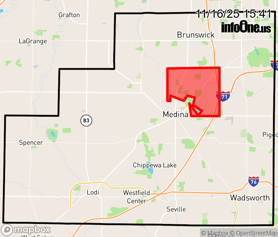 Canceled 11/16/25 4:50 PM Medina County has 1 power outage affecting 1 customer. Ohio Edison 1 without power Sharon Township: Customers affected: 19 (1%) Estimated repair: Sun 7:00 PM Updated: Sun 11/16/25 4:40 PM EST ![]() Updated: Sun 11/16/25 3:41 PM EST |
