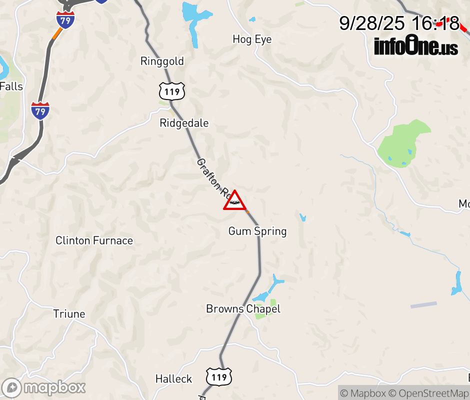 In Monongalia County there is a Vehicle Crash on US-119N at Mile Marker 5.72. near Dalton Hollow Road. ![]() |