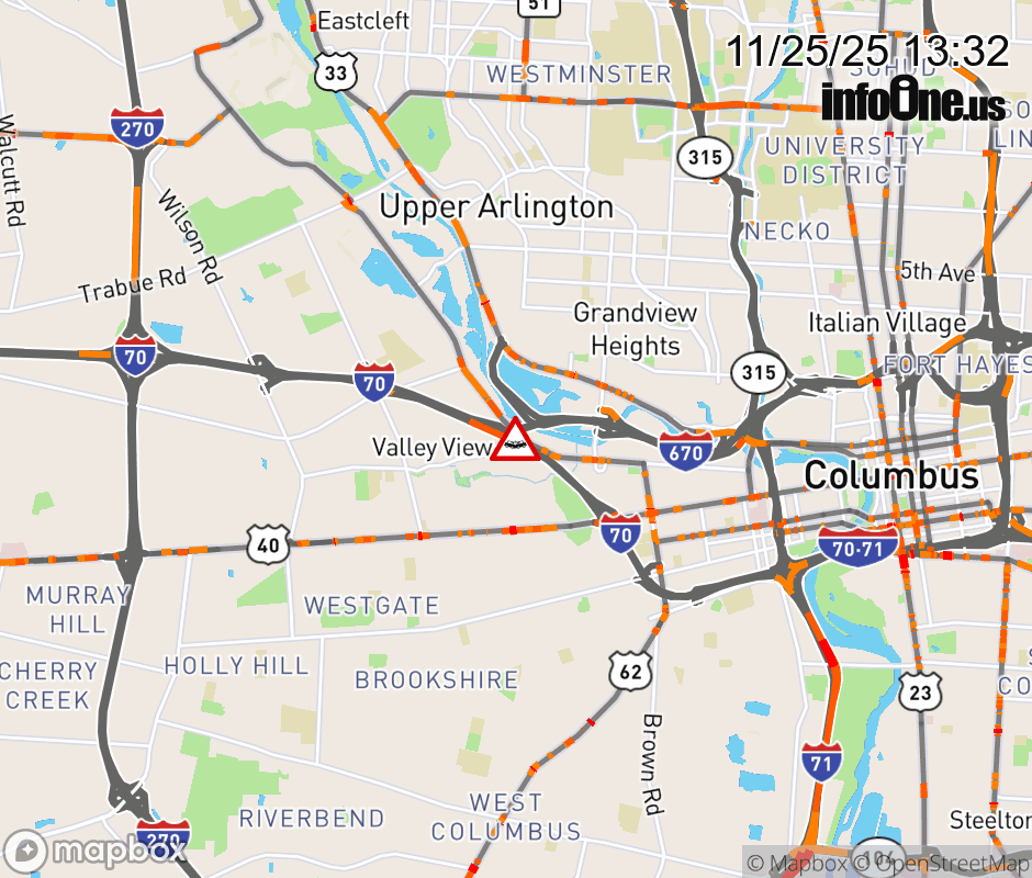The left lane is blocked on I-70 East beyond I-670 East expect lane closures on I-70 West beyond US-40/ W Broad St, due to a crash. ![]() |