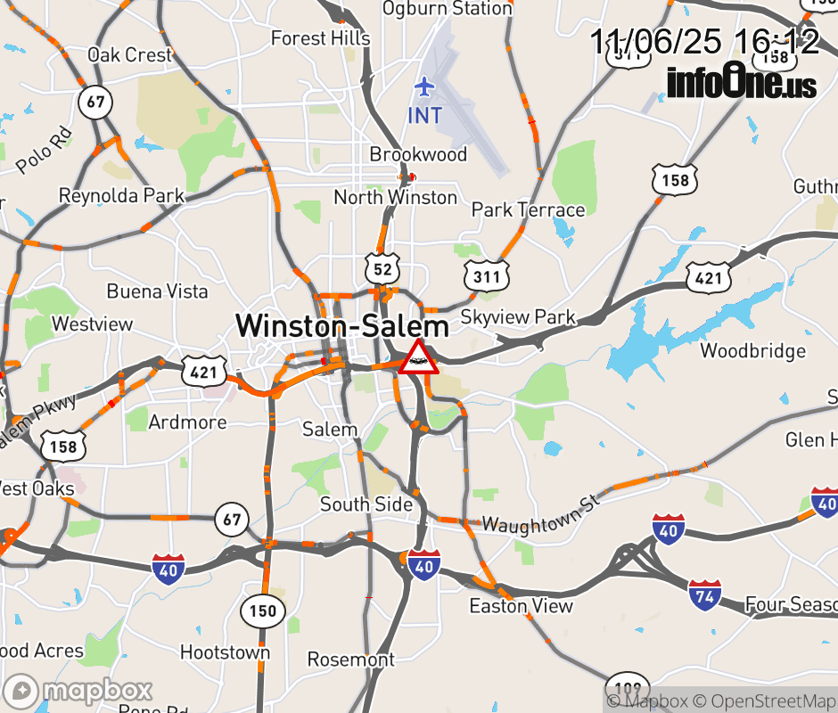 The left lane is closed at Exit 232 B (US-52). ![]() |