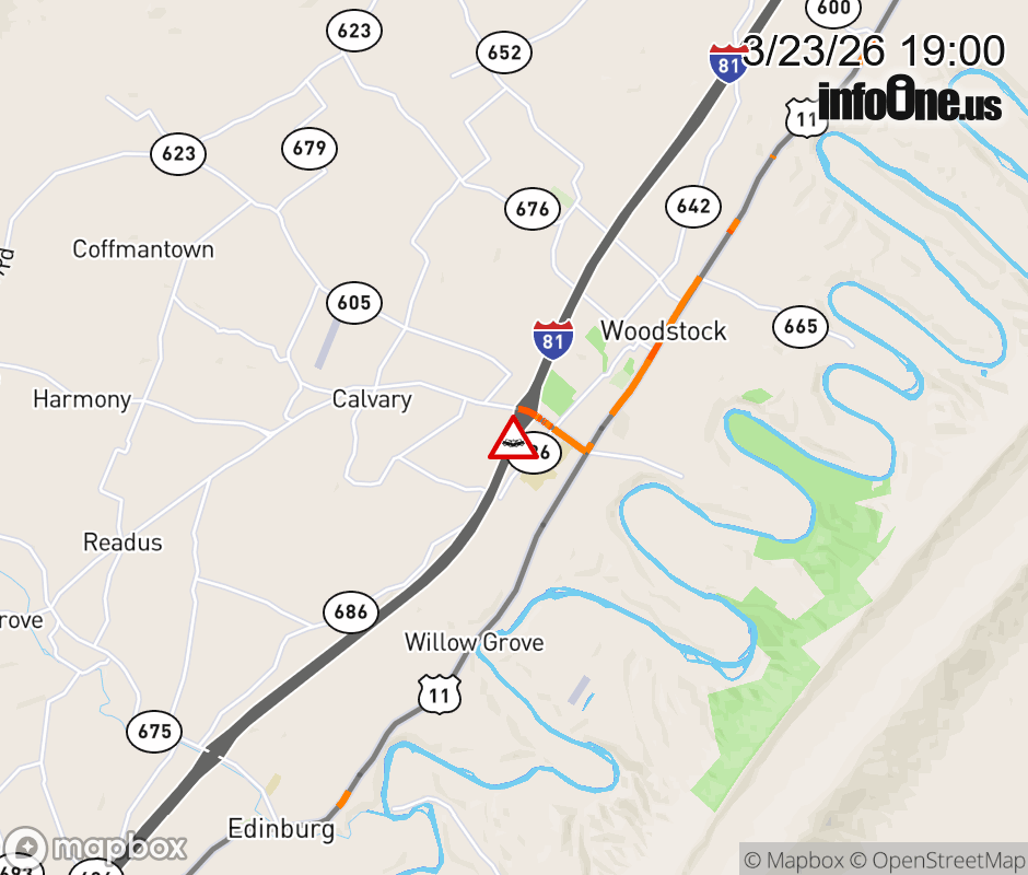 On I-81 at mile marker 283 in the County of Shenandoah, motorists can expect delays due to a vehicle crash. The south exit 283 narrows. Updated: Mon 3/23/26 7:00 PM EDT ![]() Updated: Mon 3/23/26 7:00 PM EDT |