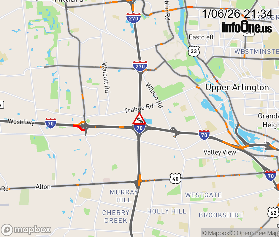 All lanes are blocked on I-270 North beyond I-70, due to repairs/maintenance. ![]() |