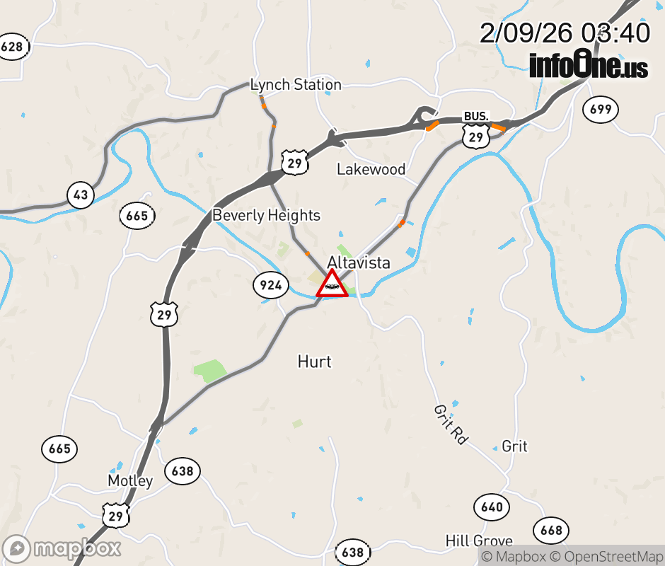 On VA-43 North in the County of Botetourt, in the vicinity of Salt Petre Cave Rd; Rt. 688N/S (Botetourt County), motorists can expect delays due to a vehicle crash. Lane closures exist. ![]() |