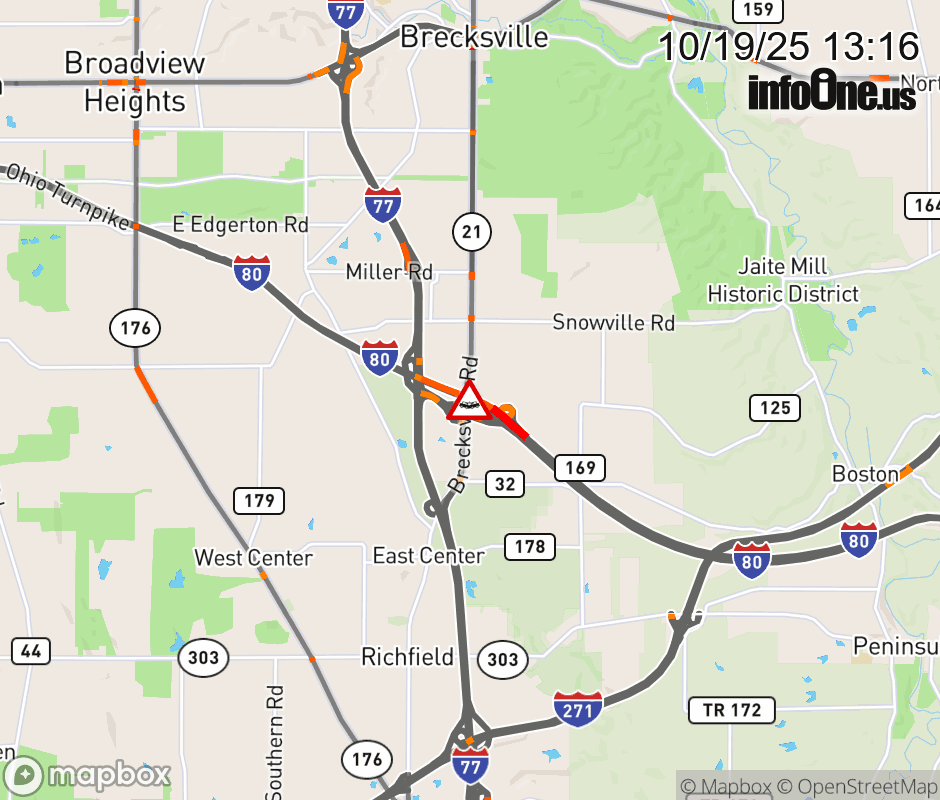 Expect lane closures on I-80 East (Ohio Turnpike) at I-77, due to a crash. ![]() |