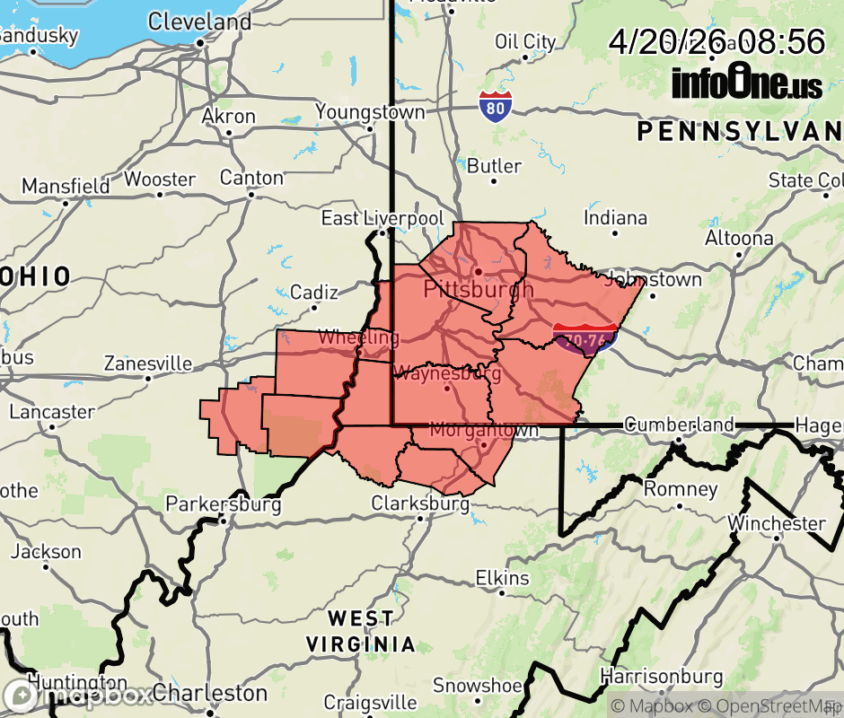 Freeze Warning issued April 20 at 8:55AM EDT until April 21 at 9:00AM EDT by NWS Pittsburgh PA * WHAT... Sub-freezing temperatures as low as 28 expected. * WHERE... Portions of east central Ohio, southwest and western Pennsylvania, and northern and the northern panhandle of West Virginia. * WHEN... From 11 PM this evening to 9 AM EDT Tuesday. * IMPACTS... Frost and freeze conditions could kill crops, other sensitive vegetation and possibly damage unprotected outdoor plumbing. ![]() |