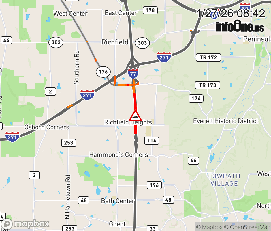 The left shoulder is blocked on I-77 South beyond SR-176, due to a disabled vehicle. Updated: Tue 1/27/26 8:42 AM EST ![]() Updated: Tue 1/27/26 8:42 AM EST |