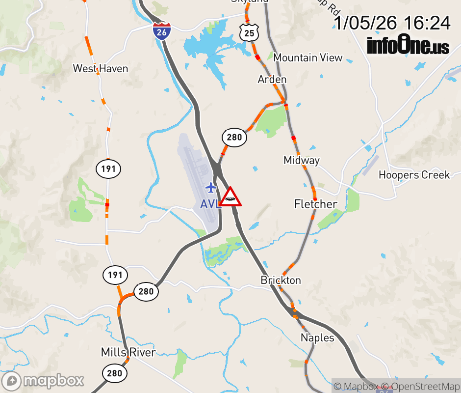 The right shoulder is closed 1 mile past Exit 40, NC 280 (New Airport Road). Updated: Mon 1/5/26 4:16 PM EST ![]() Updated: Mon 1/5/26 4:24 PM EST |