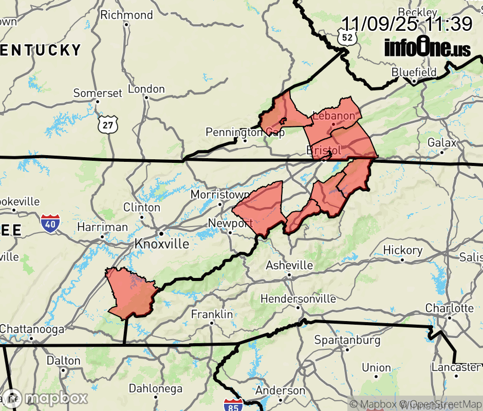 Canceled 11/9/25 2:03 PM Winter Weather Advisory issued November 9 at 11:37AM EST until November 11 at 7:00AM EST by NWS Morristown TN * WHAT... Snow expected. Total snow accumulations between 1 and 3 inches. However, some local totals up to 5 inches could occur near Sams Gap, in the higher terrain along the I-26 corridor through the Tennessee mountains. Winds gusting as high as 40 mph. * WHERE... Portions of east Tennessee and southwest Virginia. * WHEN... From 7 PM this evening to 7 AM EST Tuesday. * IMPACTS... Plan on slippery road conditions. The hazardous conditions could impact the Monday morning and evening commutes. ![]() |