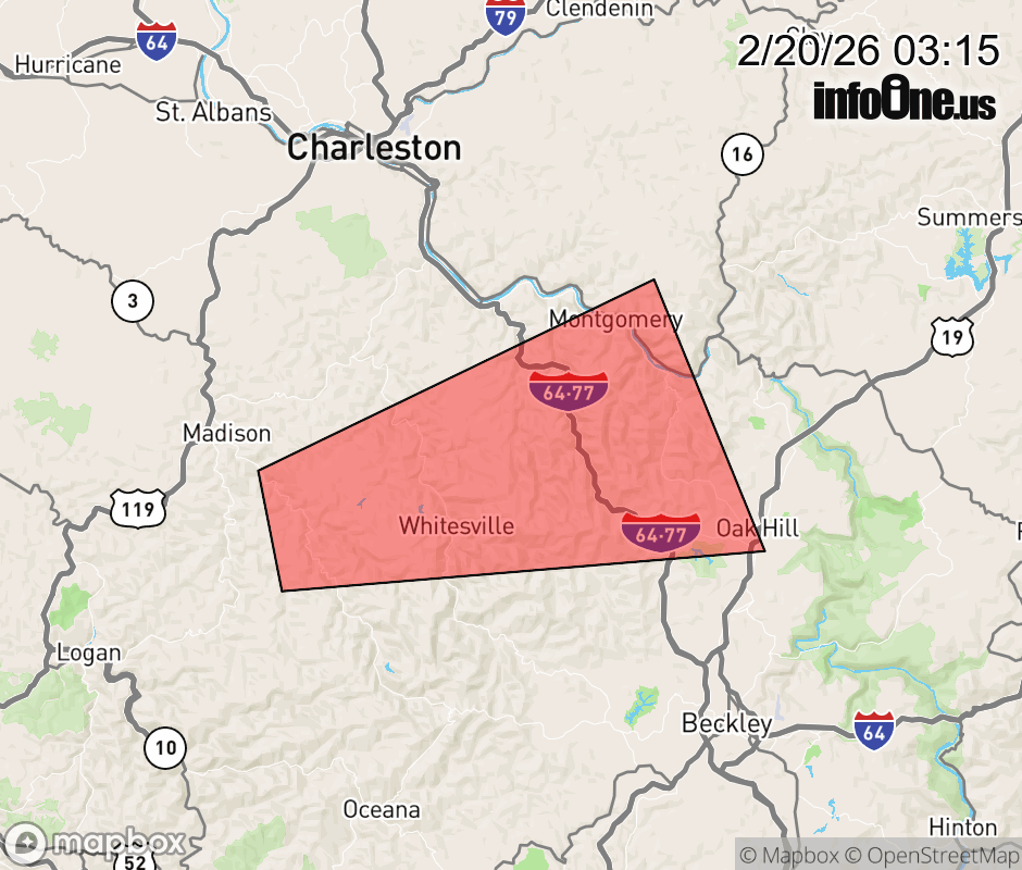 Canceled 2/20/26 4:00 AM Severe Thunderstorm Warning issued February 20 at 3:14AM EST until February 20 at 4:00AM EST by NWS Charleston WV SVRRLX The National Weather Service in Charleston West Virginia has issued a * Severe Thunderstorm Warning for... Southeastern Kanawha County in central West Virginia... Northwestern Raleigh County in southeastern West Virginia... Northwestern Fayette County in southeastern West Virginia... East central Boone County in central West Virginia... * Until 400 AM EST. * At 314 AM EST, a severe thunderstorm was located near Van, or 10 miles southeast of Madison, moving east at 50 mph. HAZARD...60 mph wind gusts and nickel size hail. SOURCE...Radar indicated. IMPACT...Expect damage to roofs, siding, and trees. * Locations impacted include... Oak Hill, Montgomery, Smithers, Van, Burnwell, Powellton, Whitesville, Handley, Sylvester, Leewood, Dawes, Prenter, Eskdale, and Dorothy. This includes the following highways... West Virginia Turnpike between mile markers 57 and 79. Route 19 near mile marker 10. ![]() |