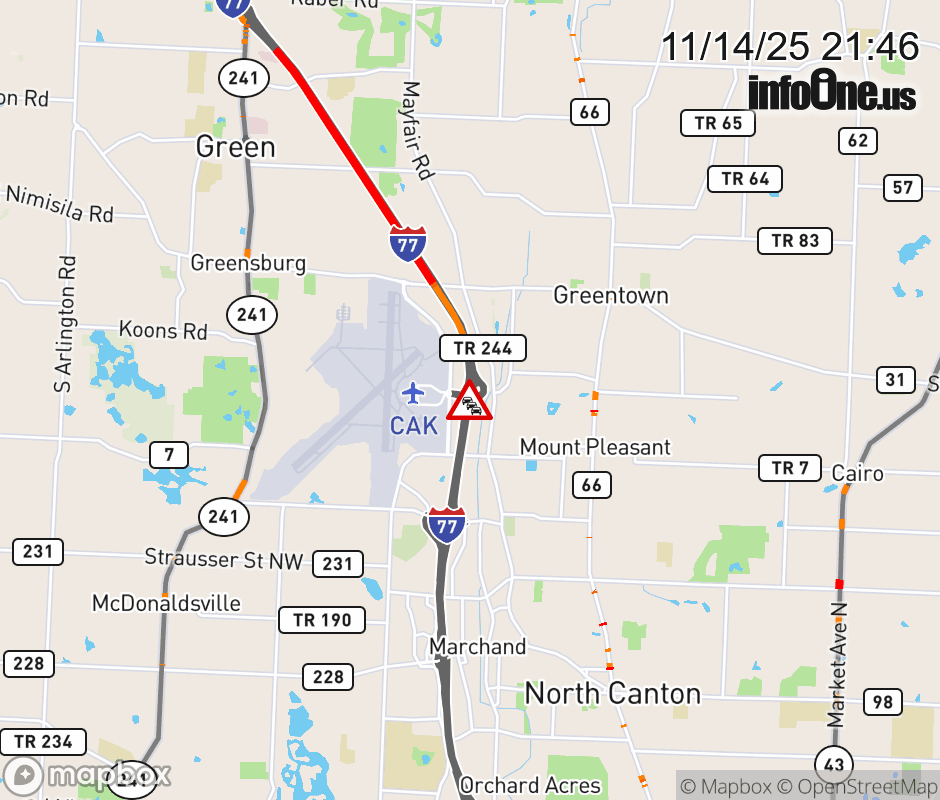 The left lane is blocked on I-77 North at Akron-Canton Airport, due to repairs/maintenance. ![]() |