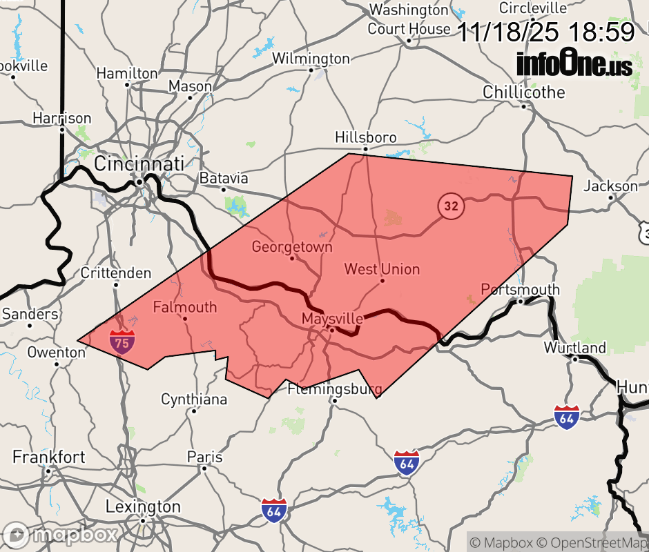 Canceled 11/18/25 7:45 PM Special Weather Statement issued November 18 at 6:57PM EST by NWS Wilmington OH At 657 PM EST, strong thunderstorms were located along a line extending from 7 miles southwest of Hillsboro to near Dry Ridge, moving east at 75 mph. HAZARD...Wind gusts up to 40 mph and half inch hail. SOURCE...Radar indicated. IMPACT...Gusty winds could knock down tree limbs and blow around unsecured objects. Hail may cause minor damage to vegetation. Locations impacted include... Maysville, Hillsboro, Georgetown, Williamstown, Falmouth, Waverly, Washington, Mount Orab, West Union, Bethel, Dry Ridge, Piketon, Manchester, Peebles, Ripley, Aberdeen, Vanceburg, Augusta, Winchester, and Marshall. This includes I-75 in Kentucky between mile markers 150 and 159. If outdoors, consider seeking shelter inside a sturdy building. To report hazardous weather conditions, go to our website at weather.gov/iln and submit your report via social media, when you can do so safely. ![]() |