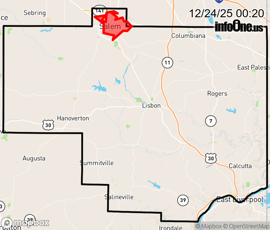Canceled 12/24/25 12:50 AM Columbiana County has 1 power outage affecting 551 customers. Ohio Edison 551 without power Salem: Customers affected: 548 (8%) Estimated repair: Wed 4:00 AM Salem Township: Customers affected: 19 (1%) Estimated repair: Wed 4:00 AM ![]() |