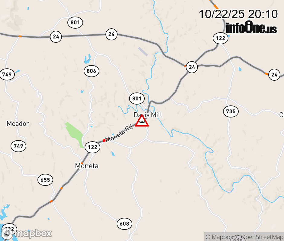 On VA-122 in the County of Bedford, in the vicinity of Morgans Church Rd; Rt. 654N/S (Bedford County), motorists can expect delays due to a vehicle crash. All north lanes are closed. All south lanes are closed. ![]() |