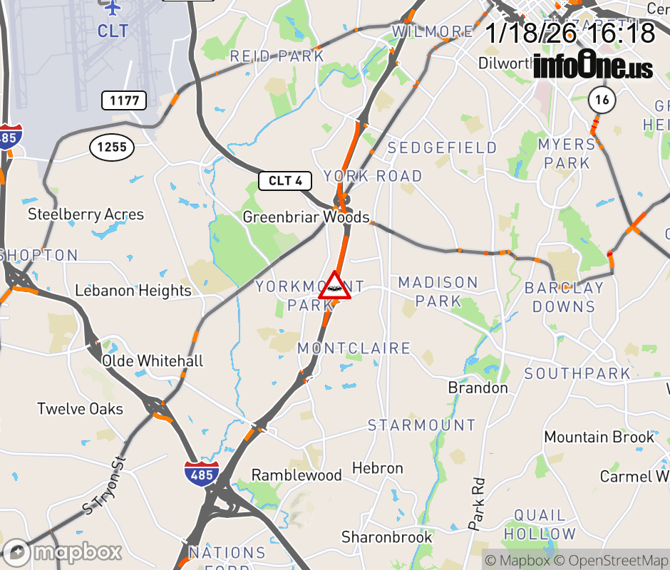 The left lane is closed near Exit 5 (Tyvola Rd). Updated: Sun 1/18/26 4:18 PM EST ![]() Updated: Sun 1/18/26 4:18 PM EST |