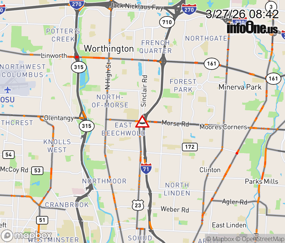Expect lane closures on South Morse Road to I71S-1 at Morse Rd East, due to a crash. ![]() |