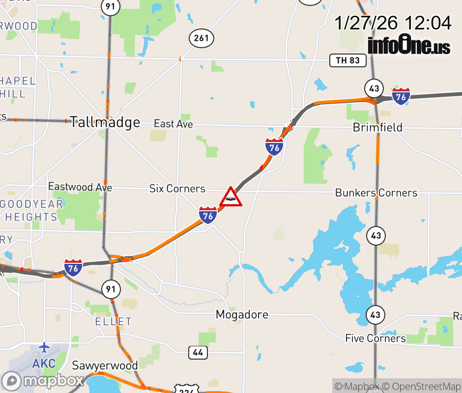 The right shoulder is blocked on I-76 West beyond County Rd 18, due to a crash. Updated: Tue 1/27/26 12:04 PM EST ![]() Updated: Tue 1/27/26 12:04 PM EST |