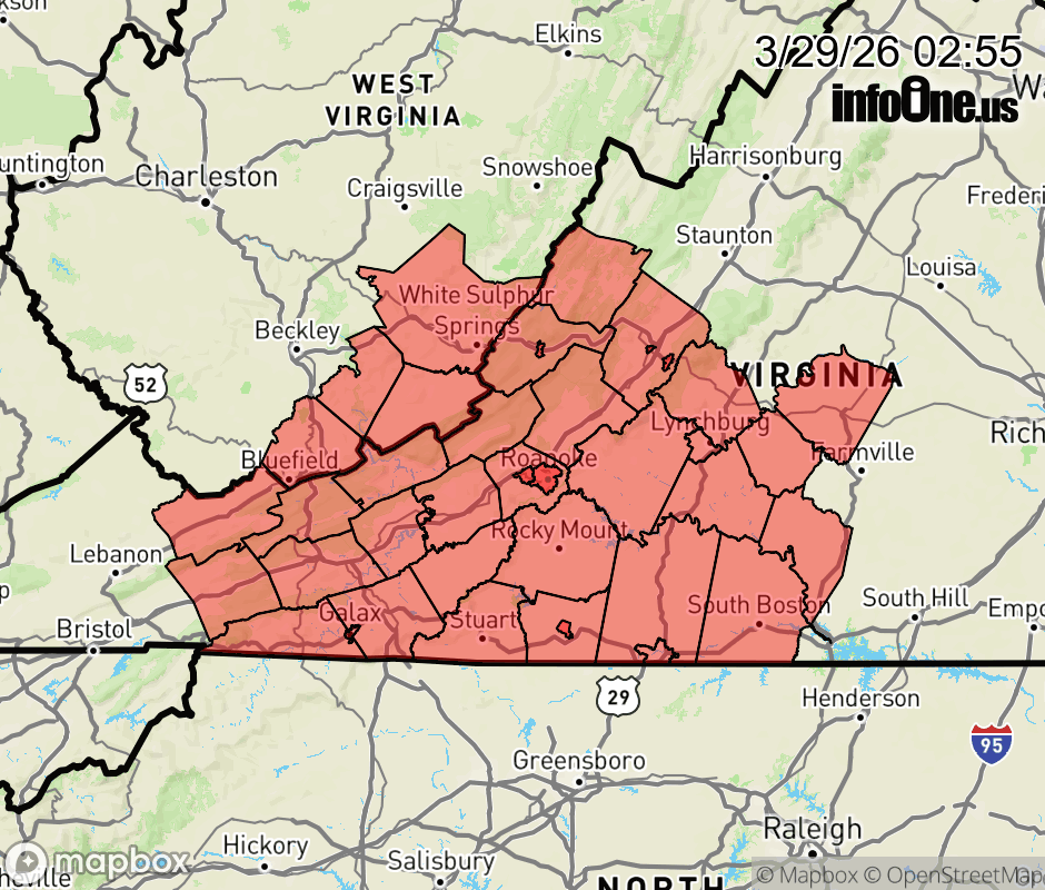 Special Weather Statement issued March 29 at 2:53AM EDT by NWS Blacksburg VA The combination of afternoon relative humidity values between 17 and 25 percent, winds gusting between 15 mph and 25 mph, and very dry fuels will lead to an increased risk for wildfires throughout much of Virginia and southeast West Virginia today. Residents and visitors are urged to properly dispose of cigarette butts, matches, and any other flammable items in appropriate containers. Additionally, exercise caution if operating any equipment that could create sparks and keep vehicles off of dry grass. Most dry grasses, dead leaves, and other tree litter could easily ignite and spread fire quickly. Please remember to obey local burn bans. For more information about wildfire danger, burn restrictions, and wildfire prevention and education, please visit your state forestry or environmental protection website. ![]() |