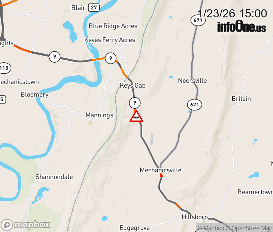On VA-9 in the County of Loudoun, in the vicinity of Sagle Rd; Rt. 687E/W (Loudoun County), motorists can expect delays due to a multi-vehicle crash. The east through lanes are closed. The west through lanes are closed. ![]() |
