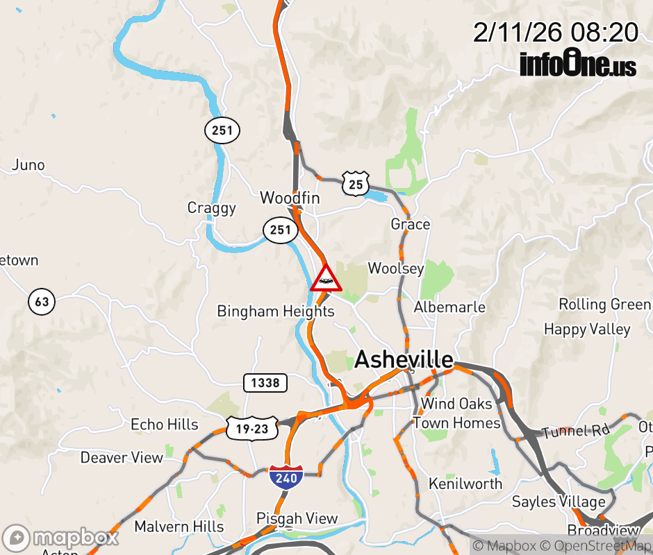 The left lane is closed near Exit 25, NC 251 (Riverside Drive). ![]() |