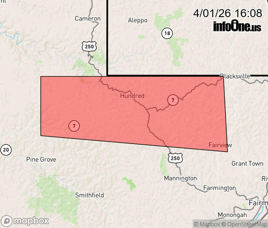 Canceled 4/1/26 4:22 PM Severe Thunderstorm Warning issued April 1 at 4:07PM EDT until April 1 at 4:45PM EDT by NWS Pittsburgh PA SVRPBZ The National Weather Service in Pittsburgh has issued a * Severe Thunderstorm Warning for... Northwestern Marion County in northern West Virginia... Northwestern Monongalia County in northern West Virginia... Northeastern Wetzel County in northern West Virginia... * Until 445 PM EDT. * At 407 PM EDT, a severe thunderstorm was located 8 miles northeast of Pine Grove, or 14 miles east of New Martinsville, moving east at 30 mph. HAZARD...60 mph wind gusts and half dollar size hail. SOURCE...Radar indicated. IMPACT...Hail damage to vehicles is expected. Expect wind damage to roofs, siding, and trees. * Locations impacted include... Fairview, Hundred, Burton, Earnshaw, Littleton, Knob Fork, Wadestown, Wana and Wileyville. ![]() |