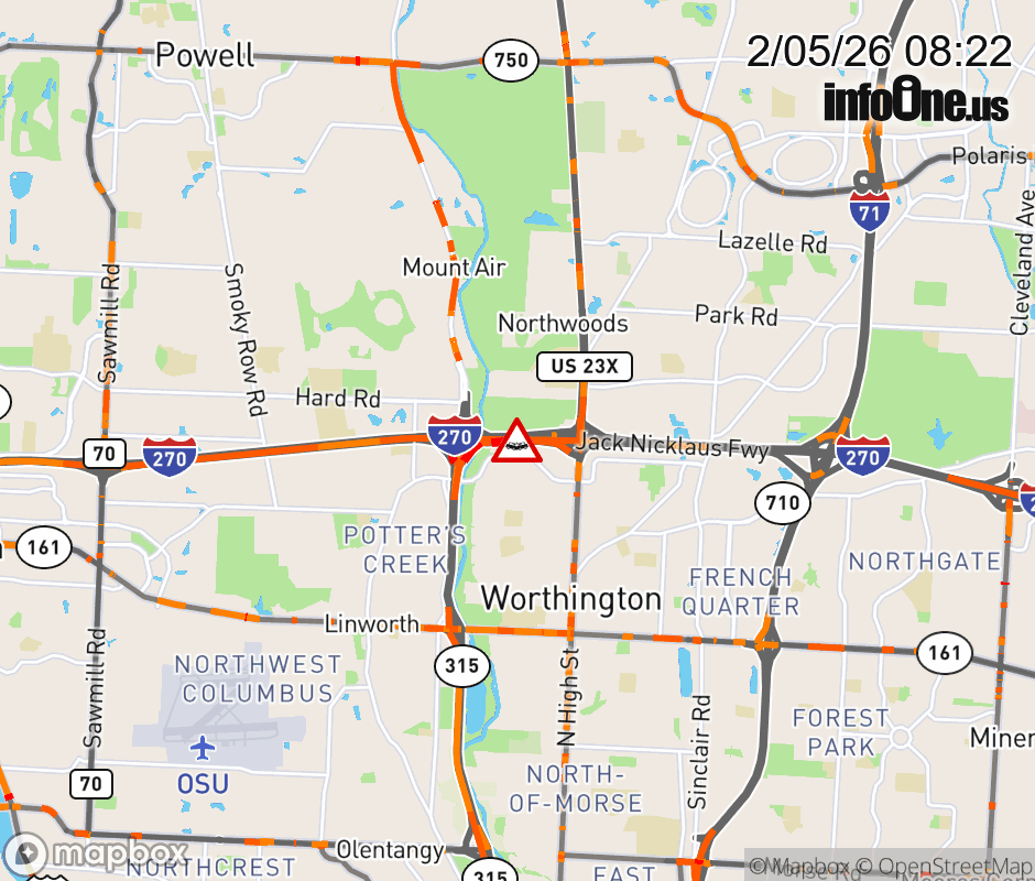 The right lane is blocked on I-270 East beyond US-23, due to a crash. Updated: Thu 2/5/26 8:22 AM EST ![]() Updated: Thu 2/5/26 8:22 AM EST |