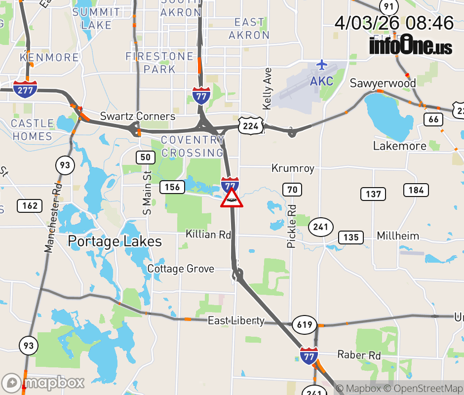 The right lane is blocked on I-77 North beyond Arlington Rd, due to a crash. Updated: Fri 4/3/26 8:16 AM EDT ![]() Updated: Fri 4/3/26 8:46 AM EDT |