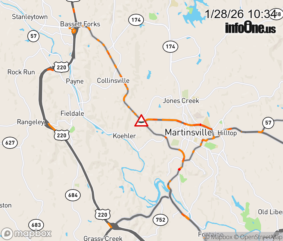 On BUS US-220 North in the County of Henry, in the vicinity of Stultz Rd; Rt. 1141E/W (Henry County), motorists can expect delays due to a vehicle crash. Lane closures exist. Updated: Wed 1/28/26 10:34 AM EST ![]() Updated: Wed 1/28/26 10:34 AM EST |