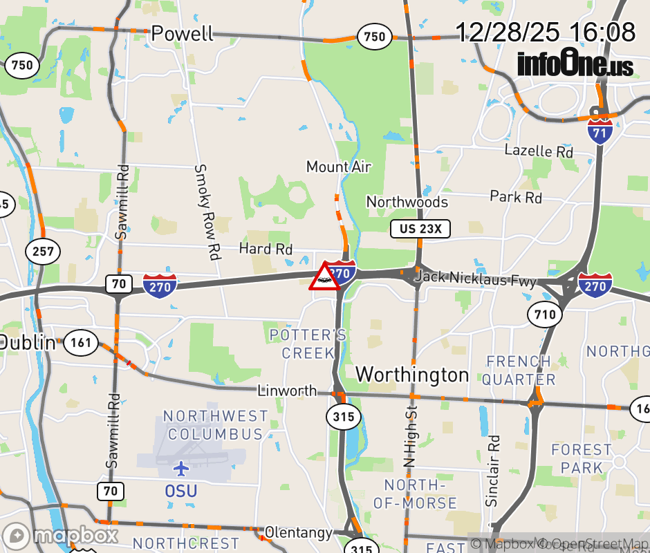 All lanes are blocked on Ramp I-270 East to SR-315 South, due to a crash. ![]() |