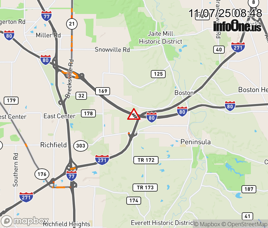 Expect lane closures on I-80 West (Ohio Turnpike) beyond SR-8, due to a fire. ![]() |