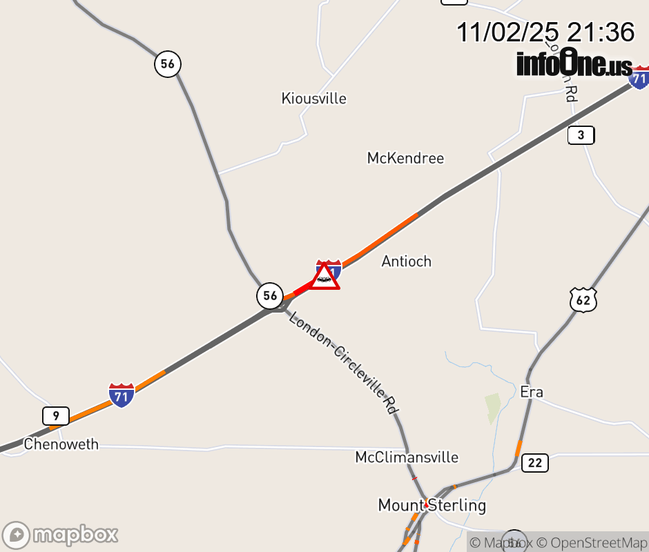 The right shoulder is blocked on I-71 South beyond US-62/SR-3, due to a crash. Updated: Sun 11/2/25 9:36 PM EST ![]() Updated: Sun 11/2/25 9:36 PM EST  |