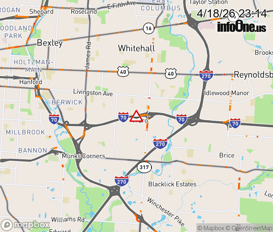 Expect lane closures on I-70 East at SR-317 South/Hamilton Rd, due to a crash. ![]() |