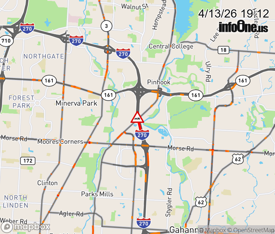 The left shoulder is closed on I-270 South beyond SR-161/Dublin Granville Rd, due to a disabled vehicle. Updated: Mon 4/13/26 7:12 PM EDT ![]() Updated: Mon 4/13/26 7:12 PM EDT |
