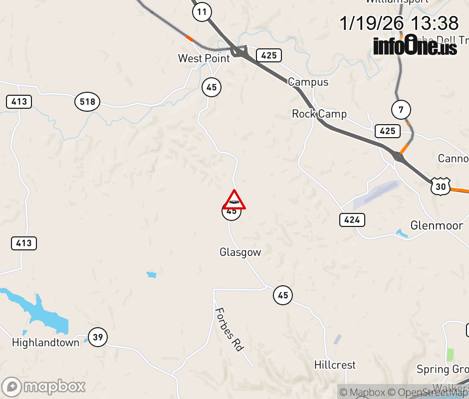 SR-45 CLOSED in BOTH DIRECTIONS 0.3 miles beyond W Point Rd to Hammond School Rd (MM: 9), due to crash. Use alternate route. ![]() |