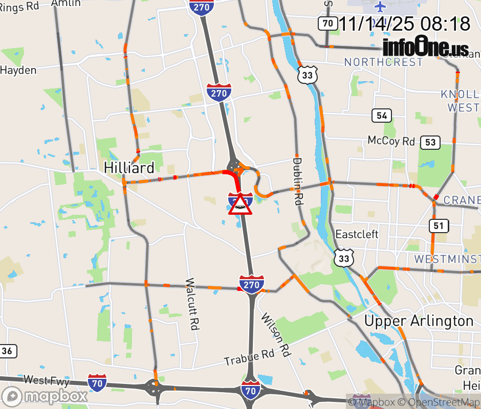 Shoulders are blocked on I-270 South beyond Cemetery Rd/Fishinger Rd, due to a crash. Updated: Fri 11/14/25 8:18 AM EST ![]() Updated: Fri 11/14/25 8:18 AM EST |