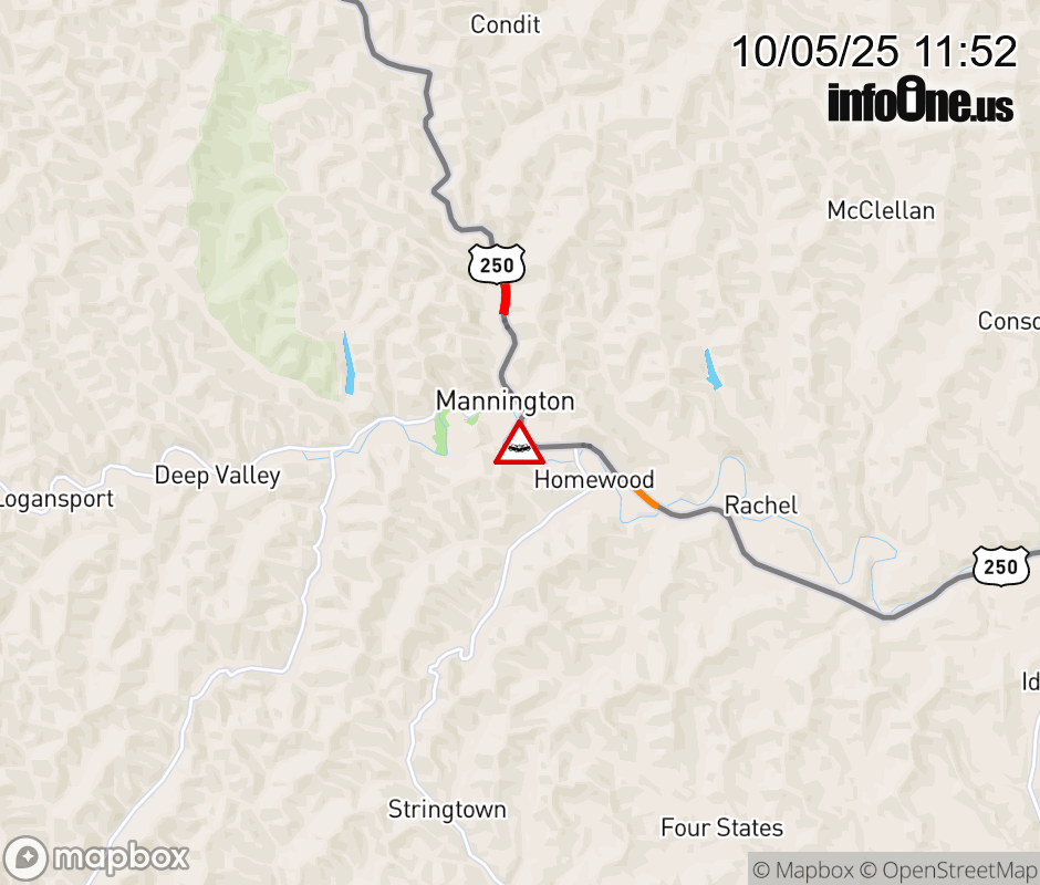 In Marion County there is a Vehicle Crash on US-250S at Mile Marker 20.71. 600 BLK of E Main St in Mannington. ![]() |