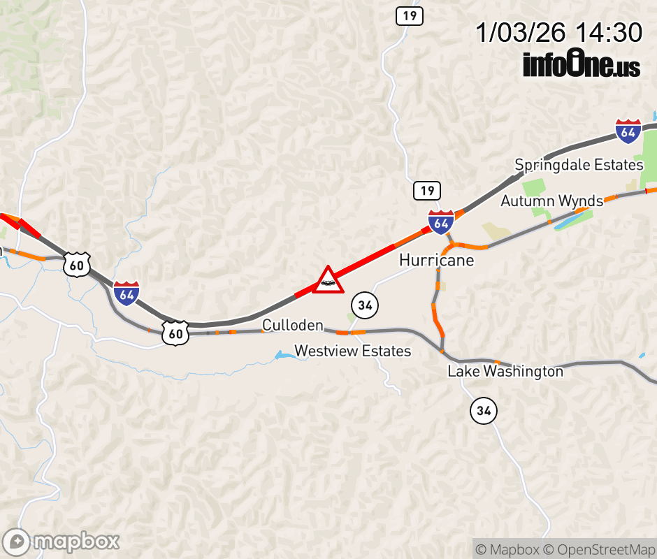 Canceled 1/3/26 4:34 PM Location: I-64 at MM 32.0, WV Accident.
