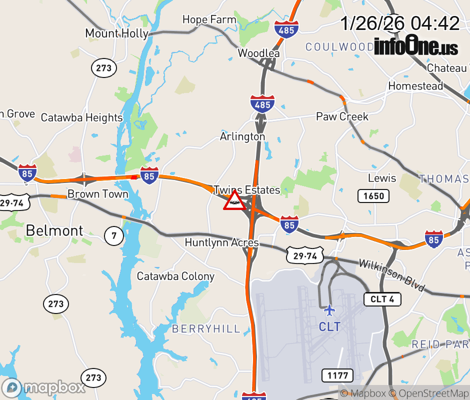 The 3 right lanes have reopened near Exit 30 (I-485). Updated: Mon 1/26/26 4:42 AM EST ![]() Updated: Mon 1/26/26 4:42 AM EST |