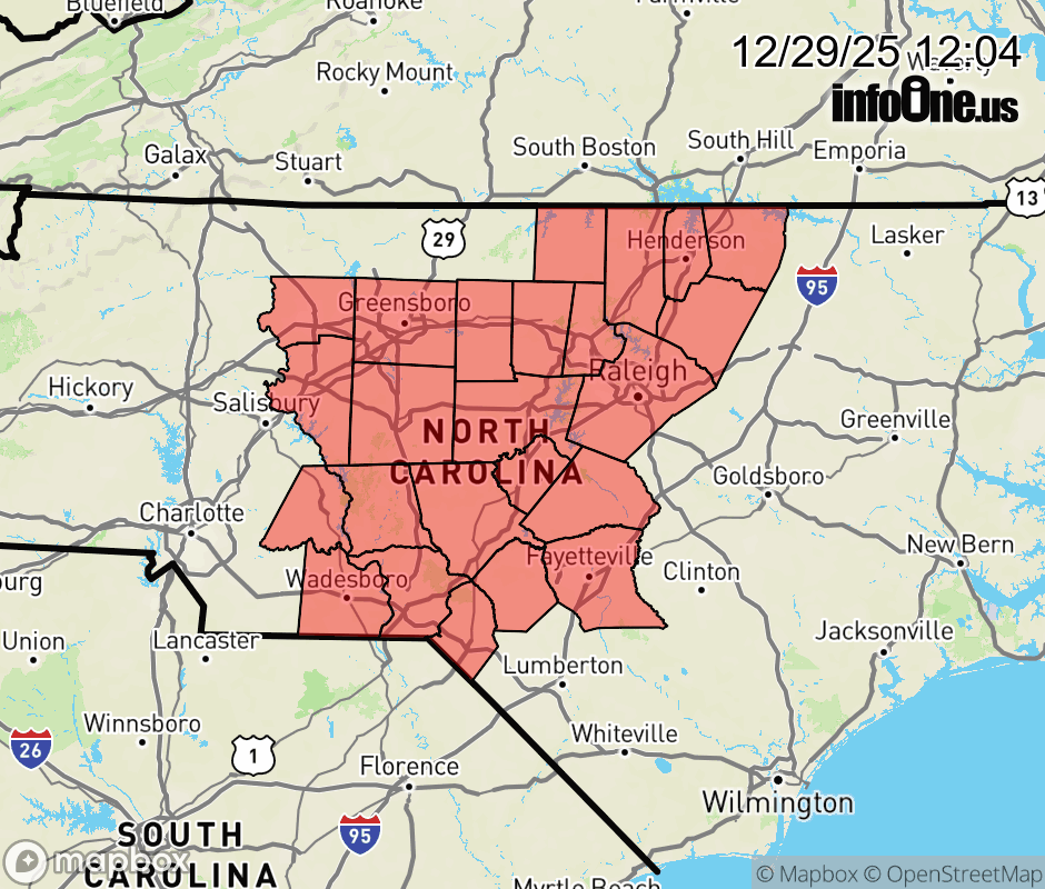 Canceled 12/29/25 6:46 PM Red Flag Warning issued December 29 at 12:02PM EST until December 29 at 7:00PM EST by NWS Raleigh NC ...RED FLAG WARNING IN EFFECT FROM NOON TO 7 PM EST TODAY FOR THE PIEDMONT OF CENTRAL NC... Low relative humidity and strong, veering wind gusts will result in Red Flag criteria behind the cold front this afternoon. * AFFECTED AREA... Fire Weather Zone 007 Person, Fire Weather Zone 008 Granville, Fire Weather Zone 009 Vance, Fire Weather Zone 010 Warren, Fire Weather Zone 021 Forsyth, Fire Weather Zone 022 Guilford, Fire Weather Zone 023 Alamance, Fire Weather Zone 024 Orange, Fire Weather Zone 025 Durham, Fire Weather Zone 026 Franklin, Fire Weather Zone 038 Davidson, Fire Weather Zone 039 Randolph, Fire Weather Zone 040 Chatham, Fire Weather Zone 041 Wake, Fire Weather Zone 073 Stanly, Fire Weather Zone 074 Montgomery, Fire Weather Zone 075 Moore, Fire Weather Zone 076 Lee, Fire Weather Zone 077 Harnett, Fire Weather Zone 083 Anson, Fire Weather Zone 084 Richmond, Fire Weather Zone 085 Scotland, Fire Weather Zone 086 Hoke and Fire Weather Zone 088 Cumberland. * TIMING... Until 7 PM EST this evening. * WINDS... West 15 to 25 mph with gusts up to 40 mph. * RELATIVE HUMIDITY... As low as 25 to 30 percent. * IMPACTS... Any fire that develops will catch and spread quickly. Outdoor burning is not recommended. ![]() |
