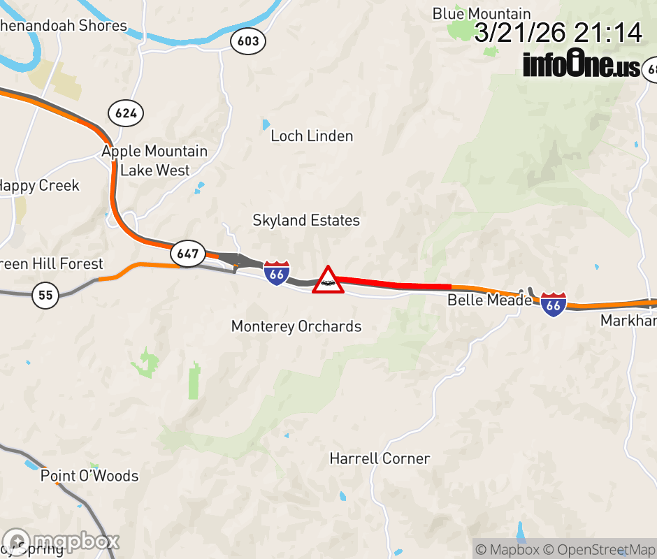 On I-66 at mile marker 14.6 in the County of Warren, motorists can expect delays due to a tractor trailer crash. The west left shoulder is closed. Updated: Sat 3/21/26 9:14 PM EDT ![]() Updated: Sat 3/21/26 9:14 PM EDT |