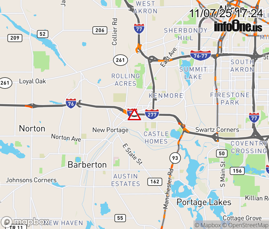 The 2 right lanes are blocked on I-76/US-224 East beyond SR-619/East Ave/Wooster Rd, due to a crash. Updated: Fri 11/7/25 5:24 PM EST ![]() Updated: Fri 11/7/25 5:24 PM EST |