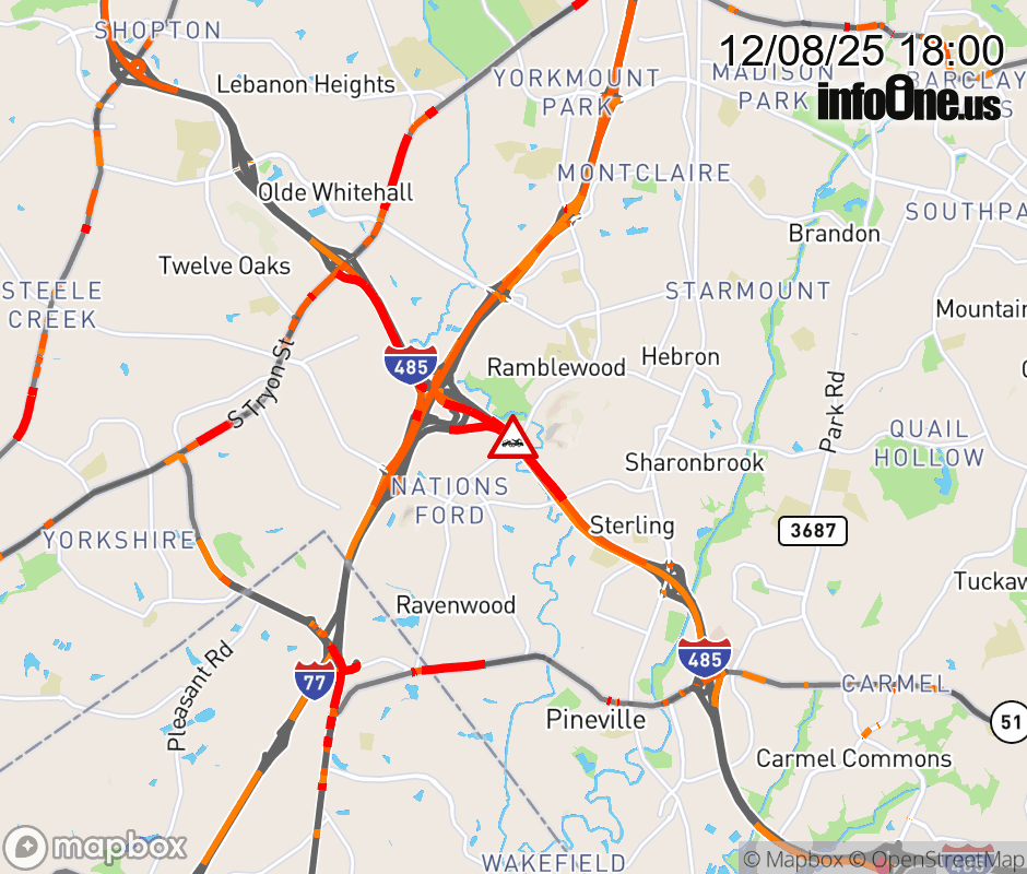 The left shoulder prior to Exit 67 (South Blvd). Updated: Mon 12/8/25 6:00 PM EST ![]() Updated: Mon 12/8/25 6:00 PM EST |