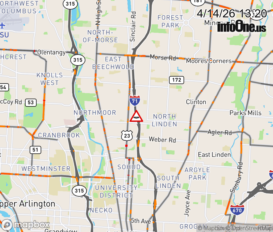 The left shoulder is blocked on I-71 North beyond North Broadway, due to a crash. ![]() |