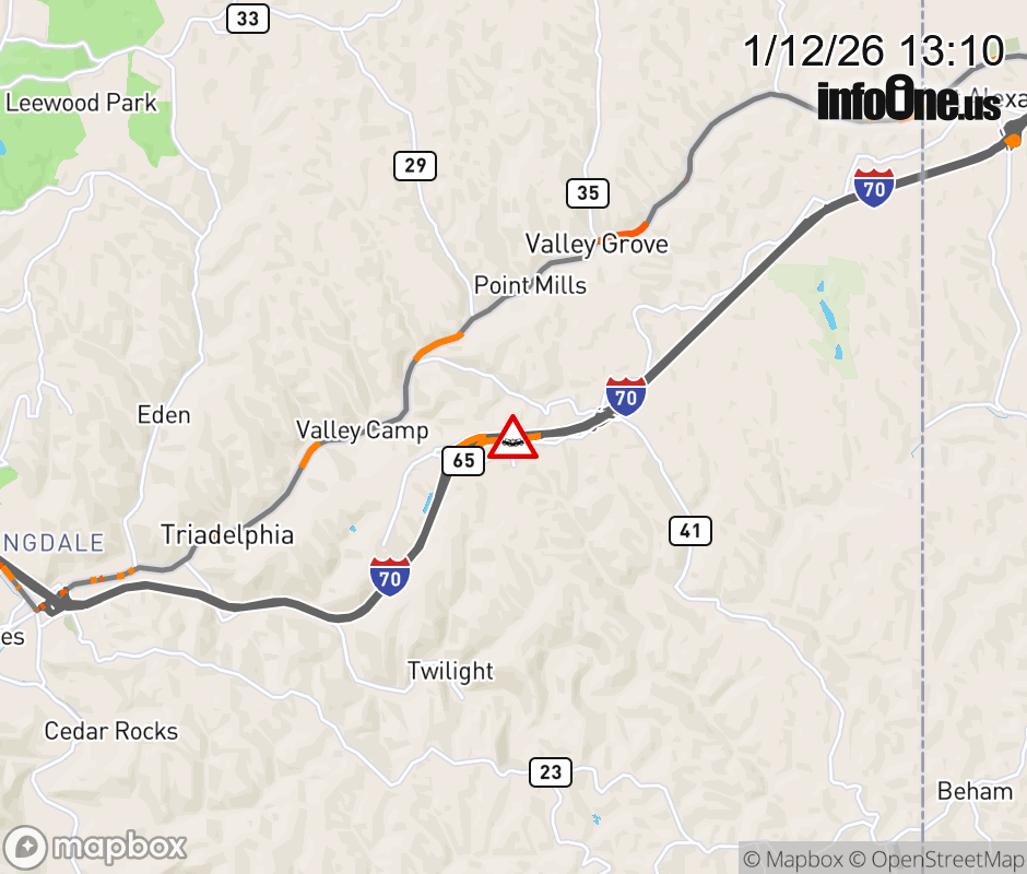 Canceled 1/12/26 2:40 PM Location: I-70 at MM 10.0, WV Accident.