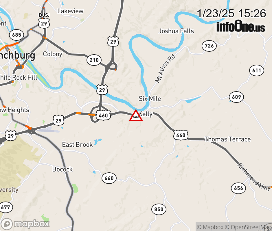 On US-460 East in the County of Campbell, in the vicinity of the ramp at Rt. 726N/S, motorists can expect delays due to a vehicle crash. Lane closures exist. ![]() |