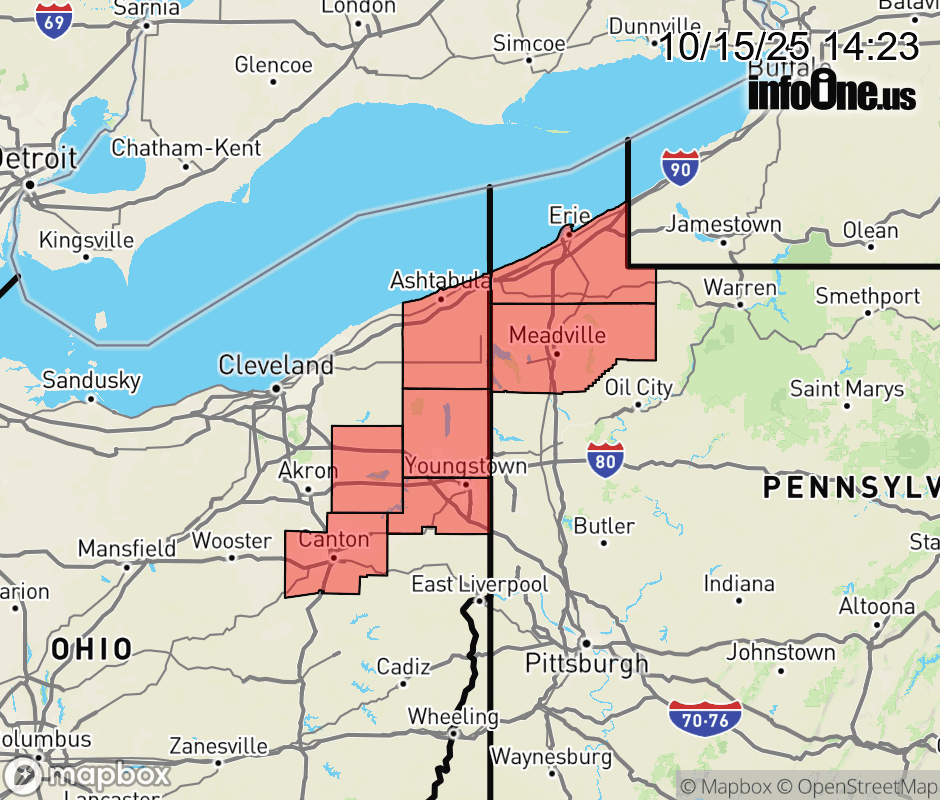 Canceled 10/15/25 7:32 PM Frost Advisory issued October 15 at 2:22PM EDT until October 16 at 9:00AM EDT by NWS Cleveland OH * WHAT... Temperatures as low as 32 will result in frost formation. * WHERE... In Ohio, Ashtabula Inland, Mahoning, Portage, Stark, and Trumbull Counties. In Pennsylvania, Crawford and Southern Erie Counties. * WHEN... From midnight tonight to 9 AM EDT Thursday. * IMPACTS... Frost could harm sensitive outdoor vegetation. Sensitive outdoor plants may be killed if left uncovered. ![]() |